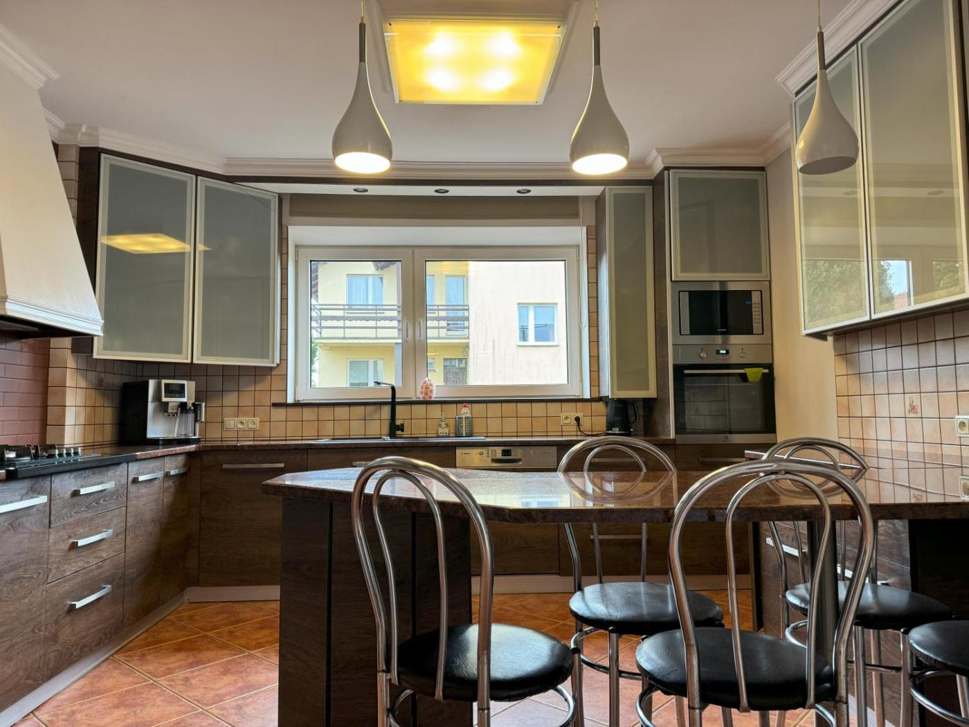 Dom z 6 sypialniami. This holiday homes special feature is the fireplace. Guests will find a stovetop, a refrigerator, a dishwasher and kitchenware in the kitchen. The holiday home also features a barbecue. The spacious holiday home offers a washing machine, a private entrance, a terrace with sea views as well as a shared bathroom boasting a bath. The unit has 8 beds. Dom wakacyjny - 14 osobowy. Powierzchnia pokoju ok.: 230 mkw.
